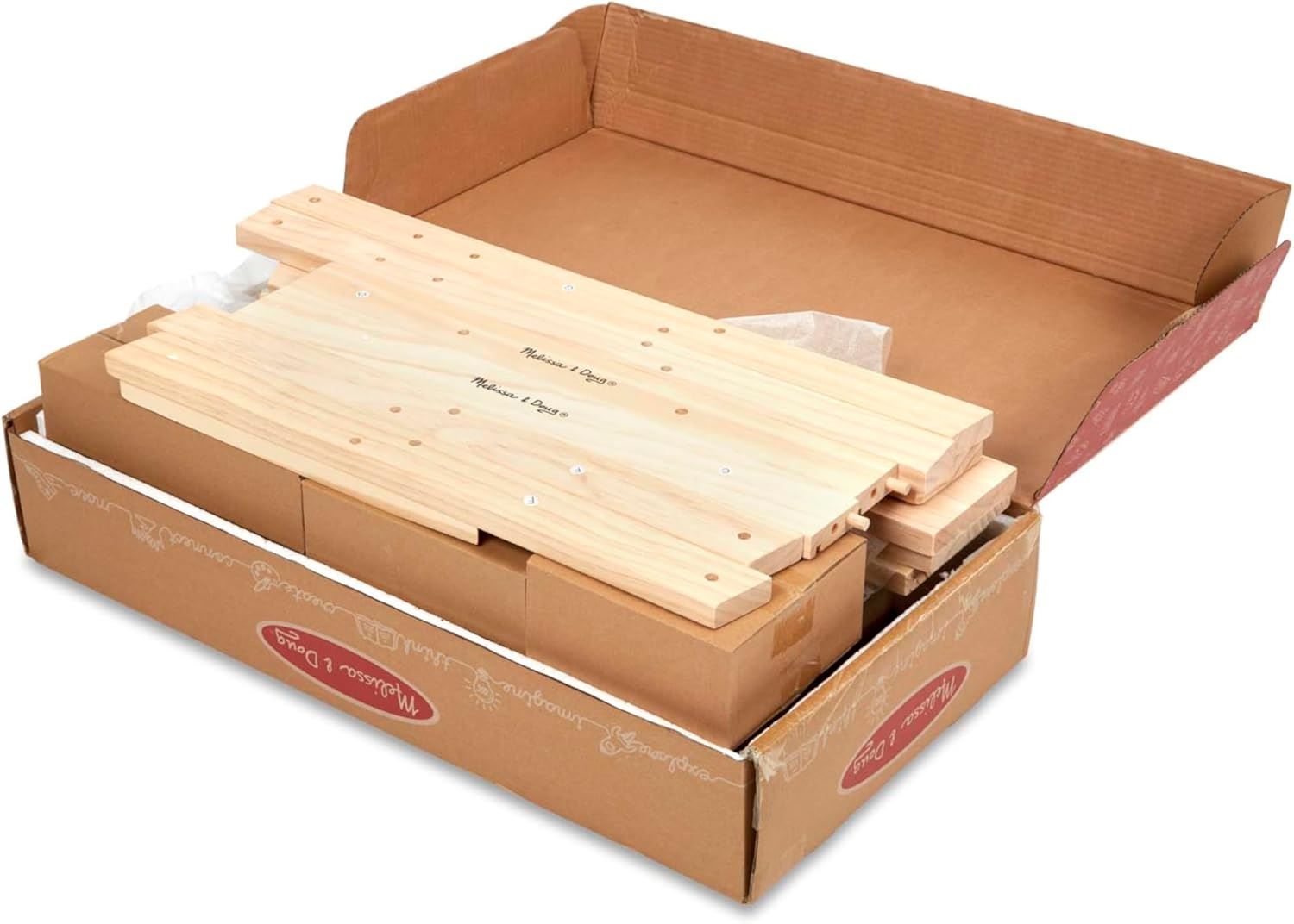 Keep that little builder busy with this sturdy wooden workbench that’s just the right size, right down to the nuts and bolts. This set includes a functioning vise, a tool rack, wooden tools and hardware, and a storage shelf. Ideas to spark the imagination are included! Our wooden workbench for kids is made of high-quality wood to ensure durability and safety. This Melissa & Doug wooden toy construction set includes a convenient storage shelf as well as a list of project ideas to spark imaginations. The Wooden Project Solid Wood Workbench is a great gift for kids ages 3 to 6. Add the Melissa & Doug Deluxe Wooden Tool Belt Set to round out the construction play experience and give kids an engaging option for screen-free fun. The Melissa & Doug workbench measures 26″ H × 18.75″ W × 24″ L and weighs 18.8 pounds. This product ships in its own special e-commerce packaging intended to reduce waste.