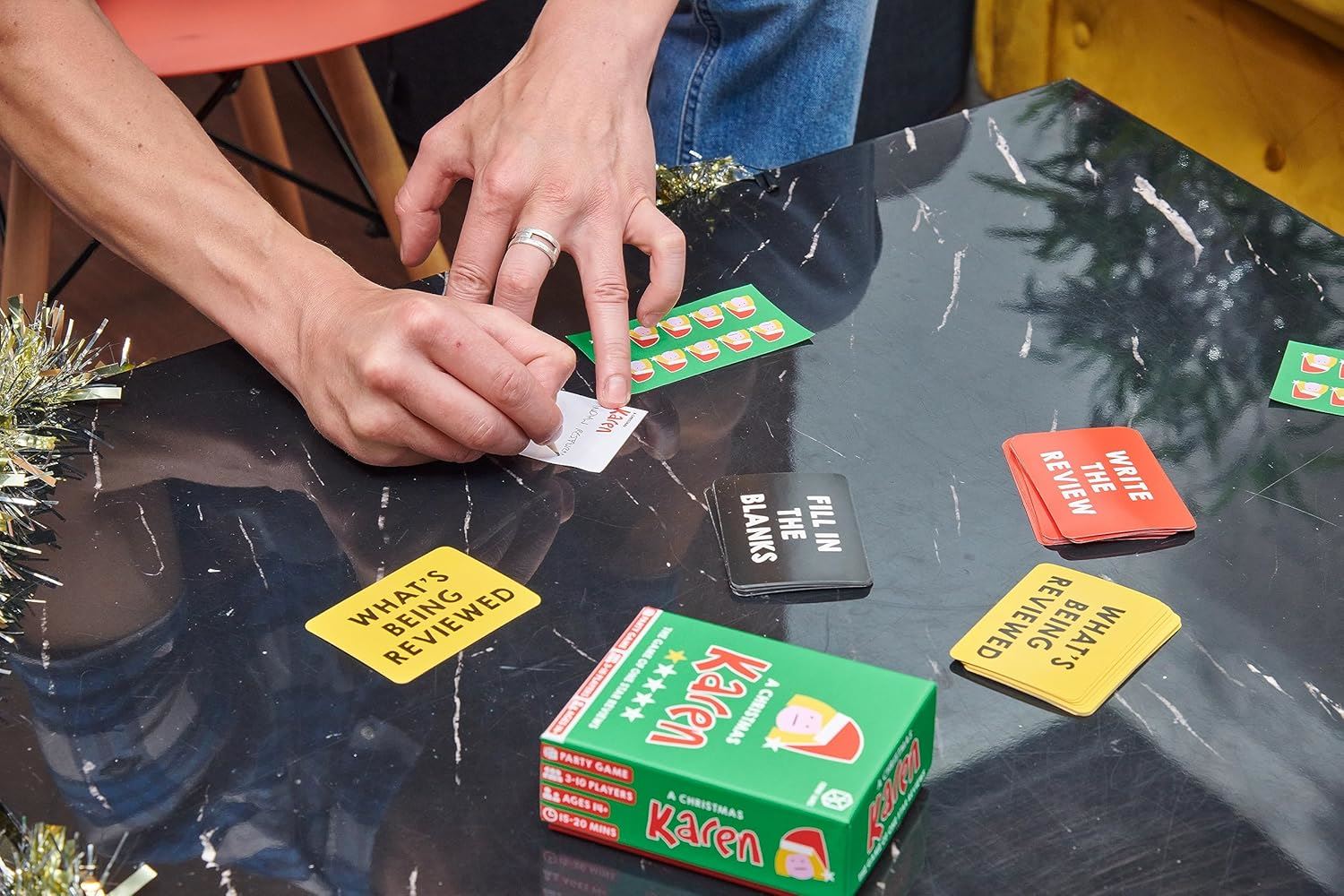 Your favourite game of one-star reviews gets a festive twist! In A Christmas Karen, players sneak their own fake complaints into hilarious real one-star reviews to trick others into believing they are the true Christmas Karen. Festive Fun: A hilarious game perfect for the holiday season, featuring one-star reviews with a Christmas theme. Bluffing and Deception: Sneak your fake complaints past your friends and convince them they are the real deal! Endless Laughter: A must-have for those who love humorous and lighthearted games during the holidays. The perfect game to get everyone laughing this Christmas as you try to become the ultimate "Karen" in the most festive way!