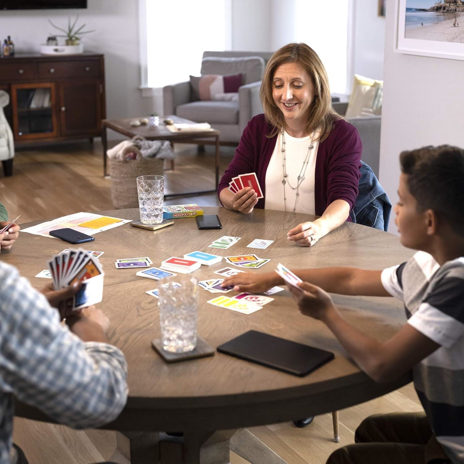 Get ready for an exciting quick-playing Monopoly card game! The Monopoly Bid game is a game of chance, luck, and strategy as players bid in blind auctions, pay with money cards, steal properties with Action cards, and change their luck with Wild cards. Played in rounds, everyone gets a chance to host an auction. When it's time to bid on a property, players choose how much money they want to risk. Then everyone shouts, "1, 2, 3, Bid!" and lays their money cards down. The player who bid the most money gets that property. Collect 3 property sets to win. The Monopoly Bid game is a great choice for game night, for parties, and as an indoor activity for kids 7 and up. The Hasbro, Hasbro Gaming, Parker Brothers, and Monopoly names and logos, the distinctive design of the gameboard, the four corner squares, the Mr. Monopoly name and character, as well as each of the distinctive elements of the board and playing pieces are trademarks of Hasbro for its property trading game and game equipment. FAST-PLAYING CARD GAME: The Monopoly Bid game is designed to be easy to learn and quick to play. It's a fun card game for families and kids ages 7 and up COLLECT MATCHING SETS: Players collect matching sets of property cards by bidding in blind auctions and paying with money cards. Everyone gets a turn to host an auction ACTION CARDS: Action cards offer advantages to the player hosting the auction. Steal property from other players, draw extra money cards, and collect sets faster 1, 2, 3, BID!: Ready to bid? At the same time, everyone shouts "1, 2, 3, Bid!" then lays their money cards out. The highest bidder wins that property. The first player to collect 3 property sets wins FUN FAMILY GAME: Gather friends and family together for this fun, fast twist on Monopoly gameplay. It's a great choice for game night, to take to parties, and as an indoor activity for kids 7 and up • Includes 110 cards and game guide. • Ages 7 and up • For 4 players.
